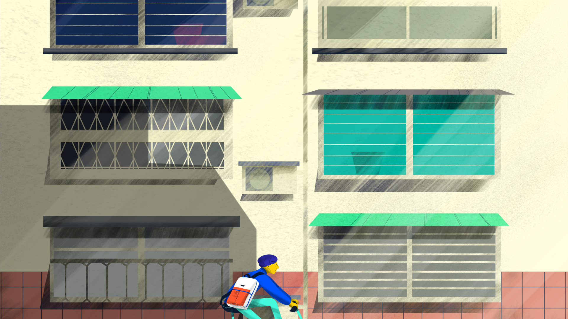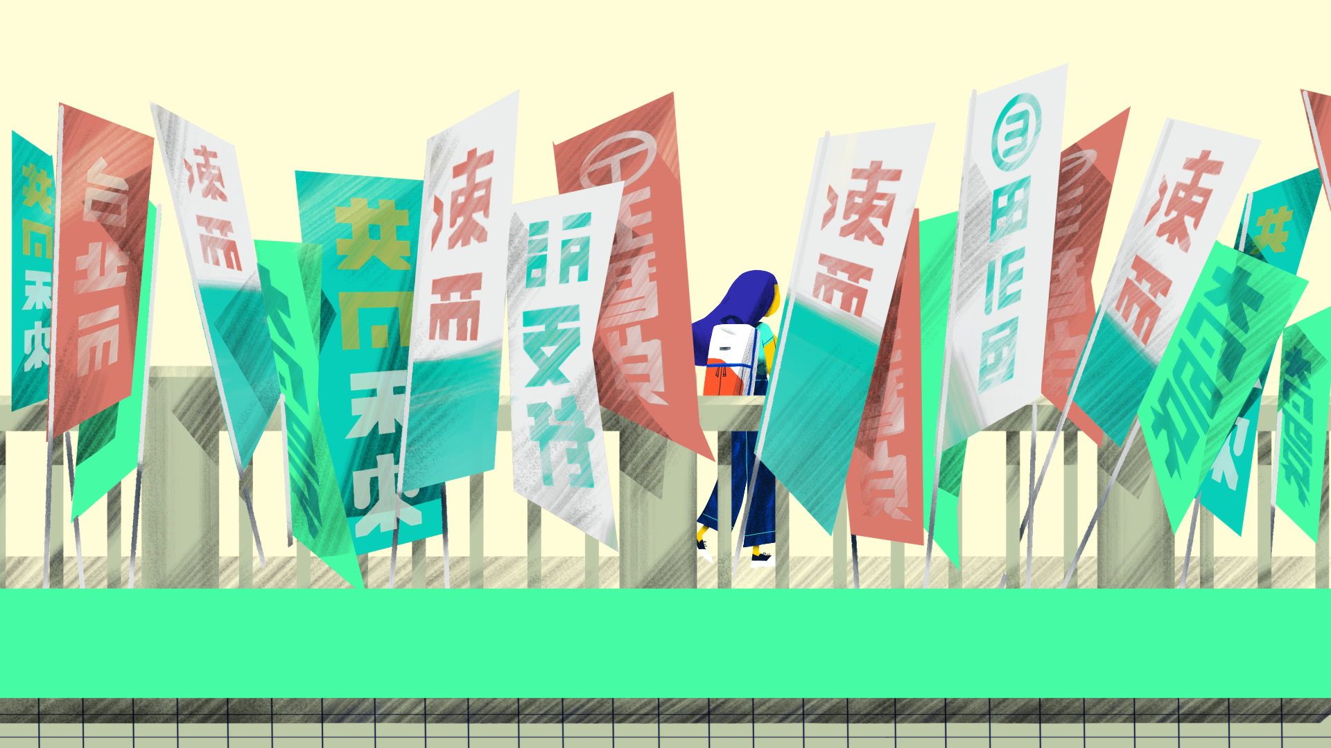 影片沒有對話,交錯的時間序,仿若夢境和現實交疊,全手繪製作呈現出鮮活細節,更置入熟悉的台北街頭風情:招牌、鐵窗、選舉旗幟。藝術性主導的風格化構圖、選色和取材,正如Freitag從卡車偵探精心選布、嚴格清洗到人工重新構圖縫製的過程。