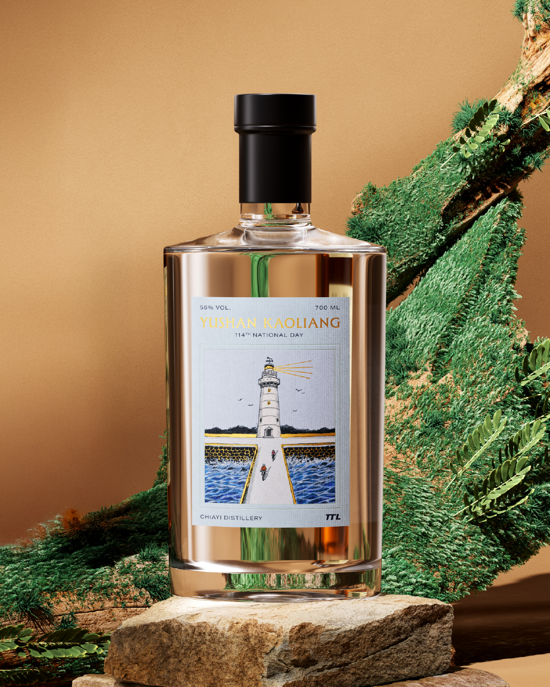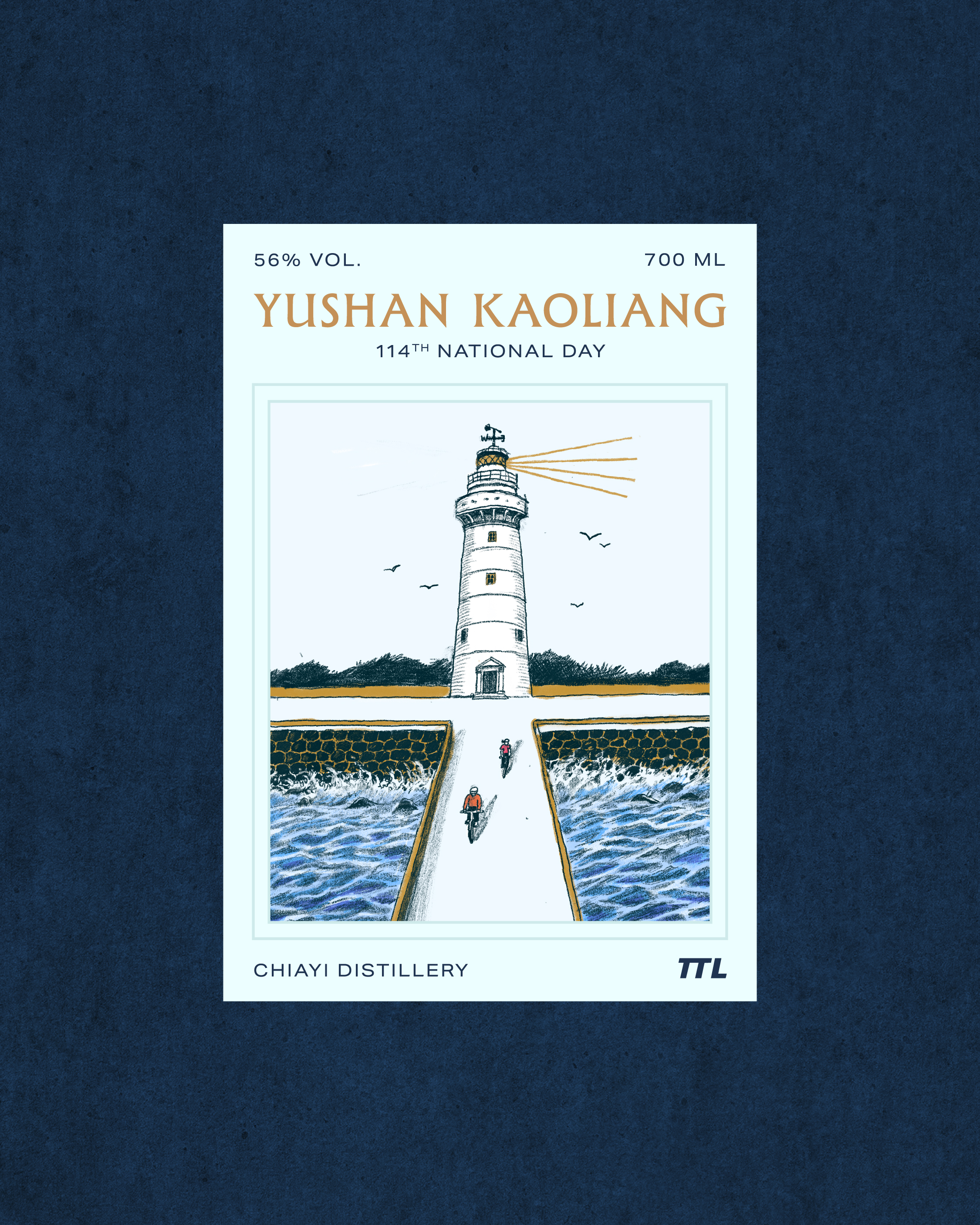 山與海,是臺灣鮮明的地理記憶,乘載著我們的生活與歷史。114年臺灣菸酒國慶紀念,我們將山、海意象帶入酒標設計與包裝,並邀請台裔倫敦插畫家 David 黃大為繪製,讓這款紀念酒成為一座島嶼,乘載自然與生活流動的痕跡。